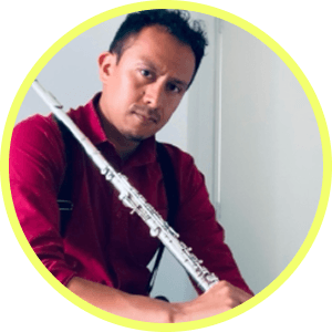 Music graduate from the National Pedagogical University, specialized in flute and trained under Maestro Julio A. Noguera R., with a diploma in Chamber Music Performance (2025). He has participated in international masterclasses and has extensive experience as a teaching artist with the Bogotá Philharmonic Orchestra, as well as a flute and music instructor for children and youth.